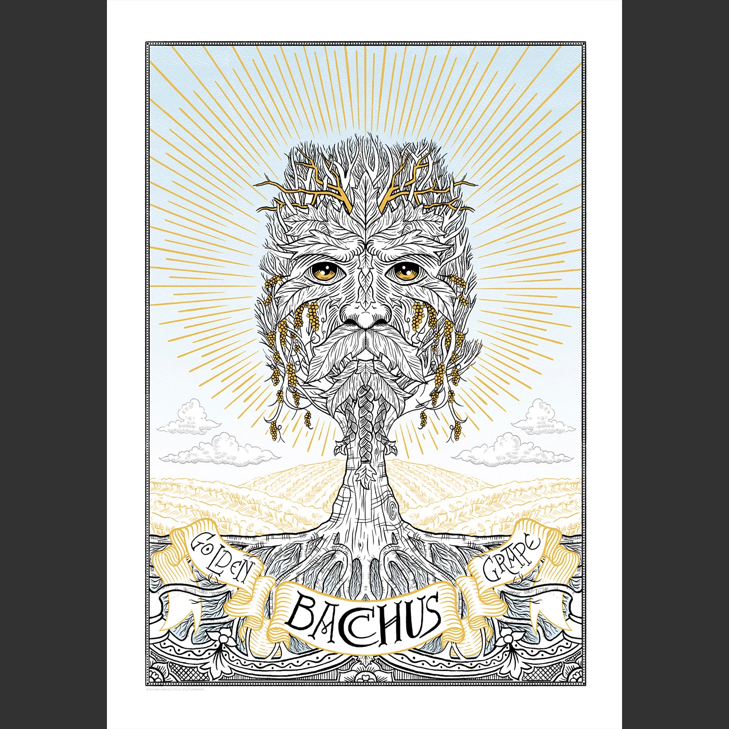 The Bacchus grape is named after the Roman god of wine, who according to myth, washed away King Midas’s golden powers into a river, where we imagine them as the source for the vines producing grapes in England with a golden hue.